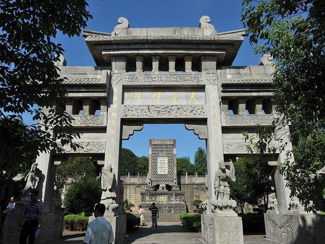 天宁碑院:由碑坊、碑屏、碑石、碑亭、碑廊、碑室等组成。仿古院落式建筑群,对历代于桃花有贡献者,均收录于志,铭刻于碑,藏立碑院,流芳百世而不朽。